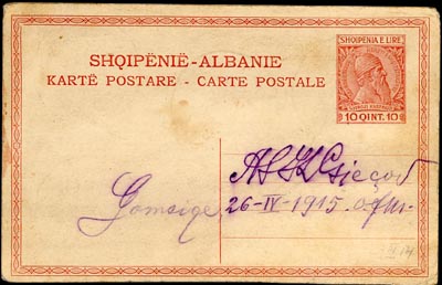 cancelled Zyra e Telegraf... Elbasan 29th August 1915,