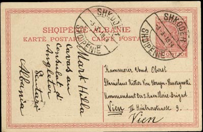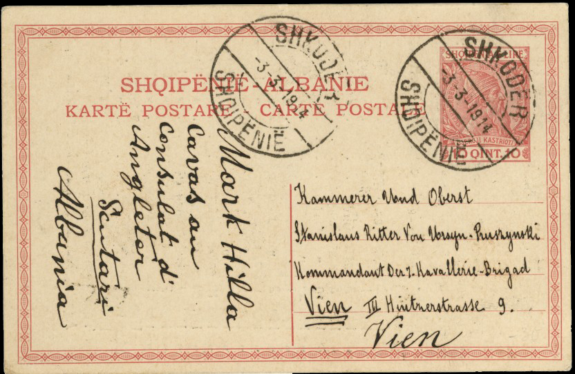 Shkodër 3rd March 1914 and addressed to Wien, Austria.