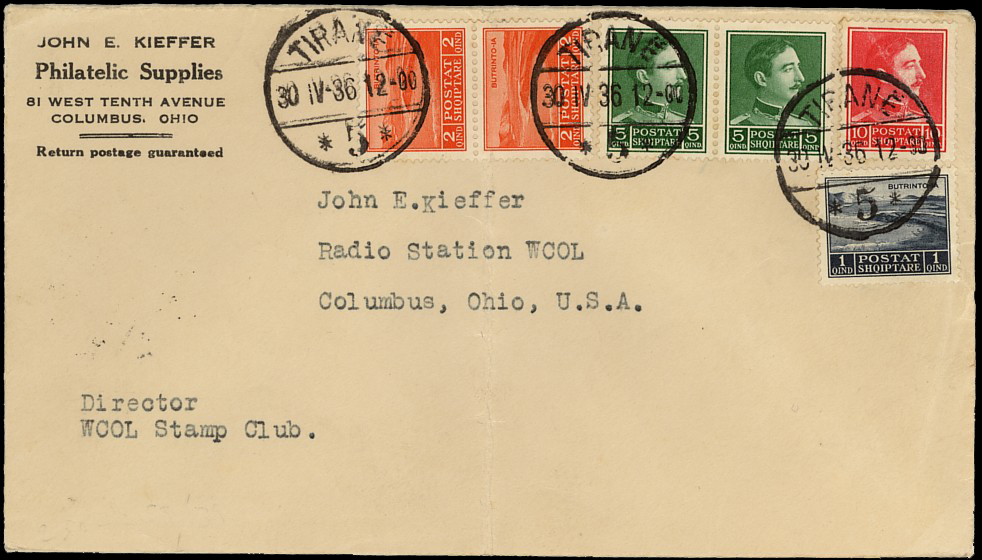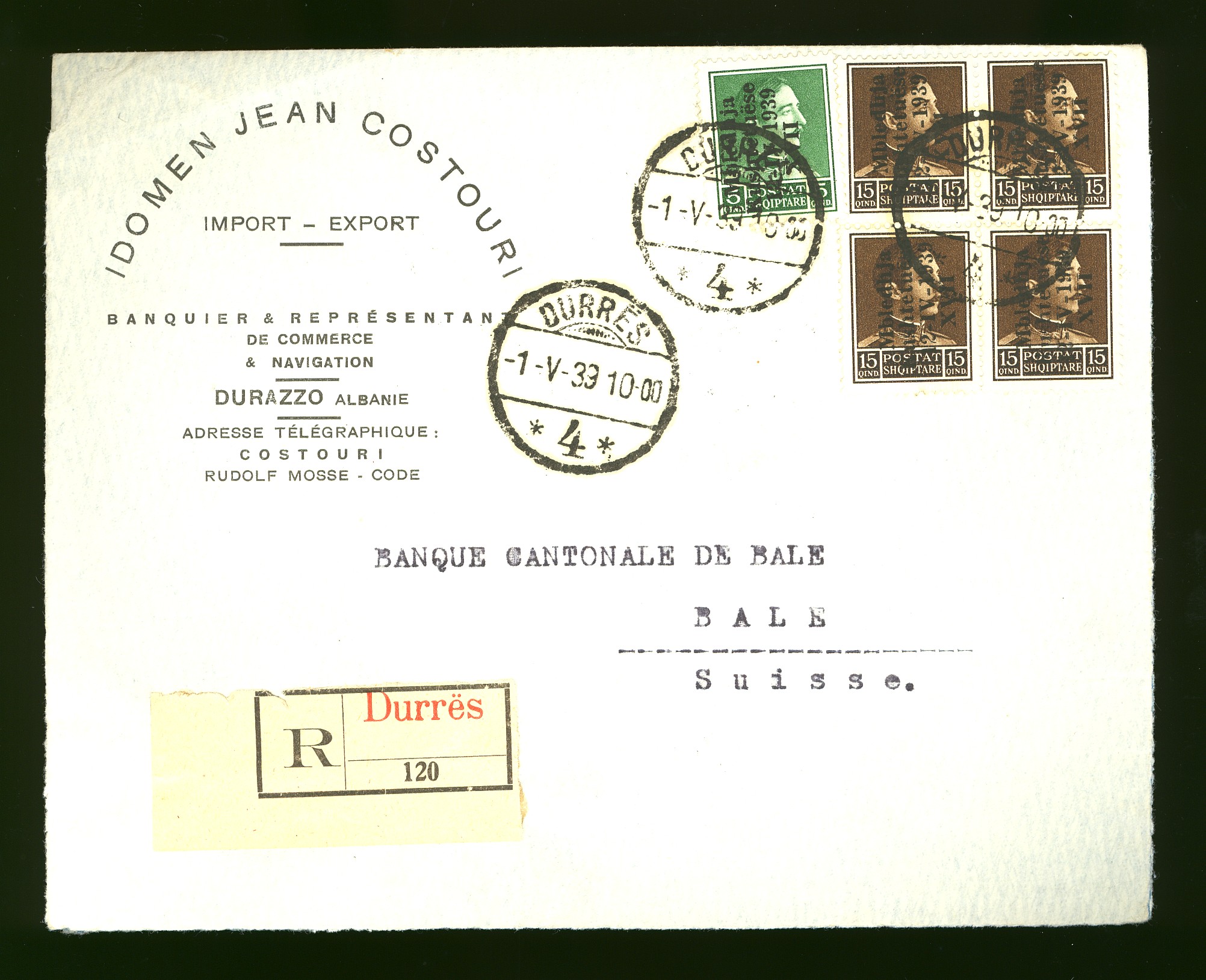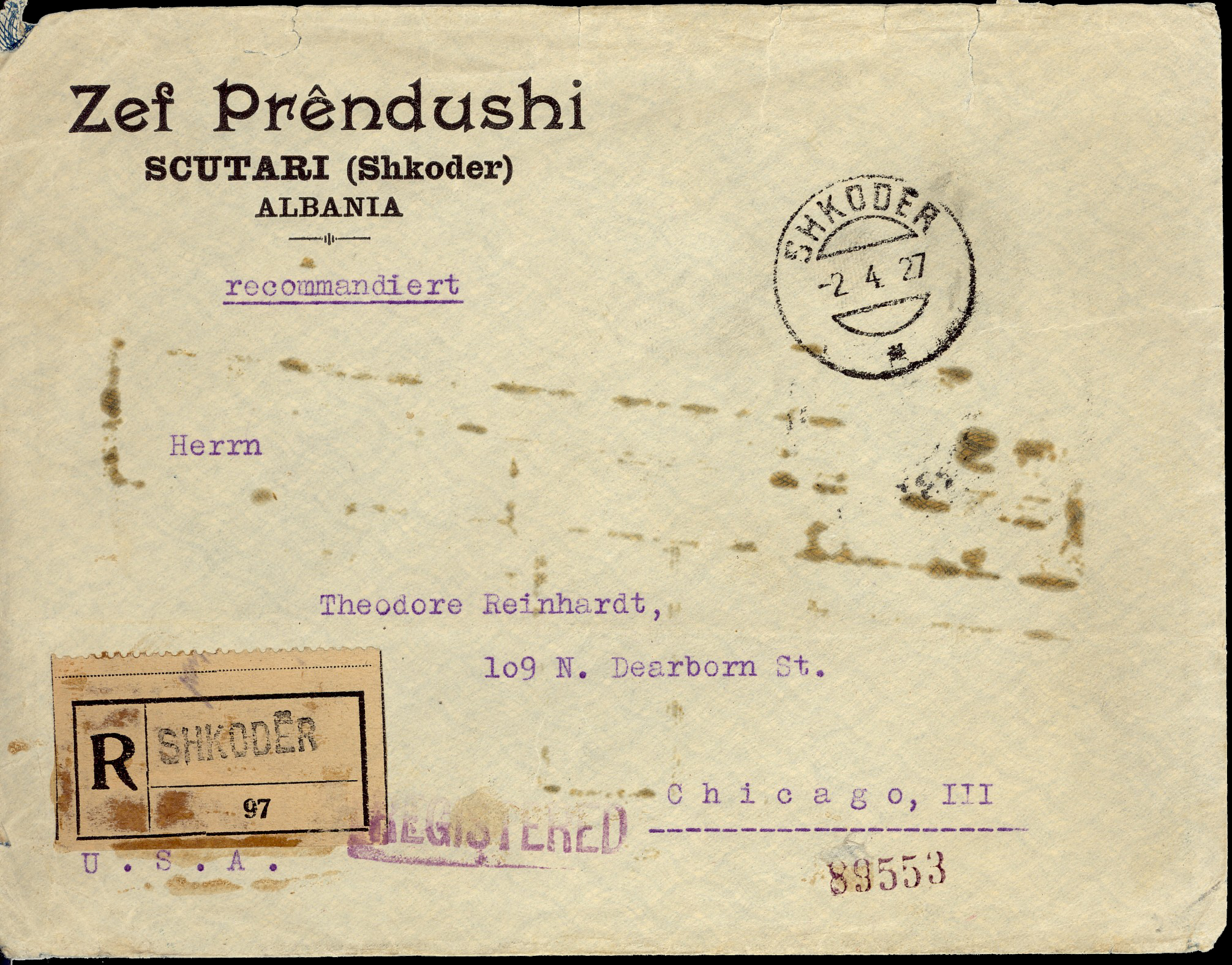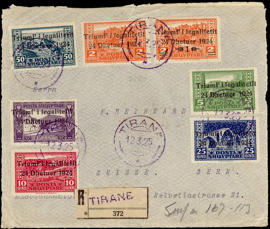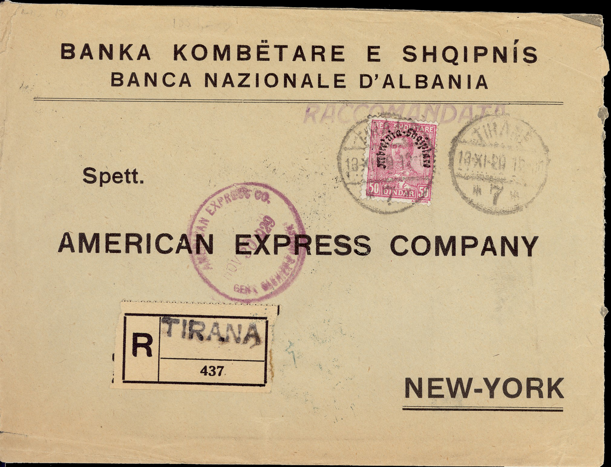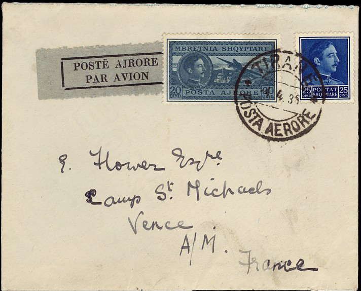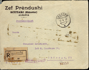 registered letter from Tirane 26th April 1925 to New