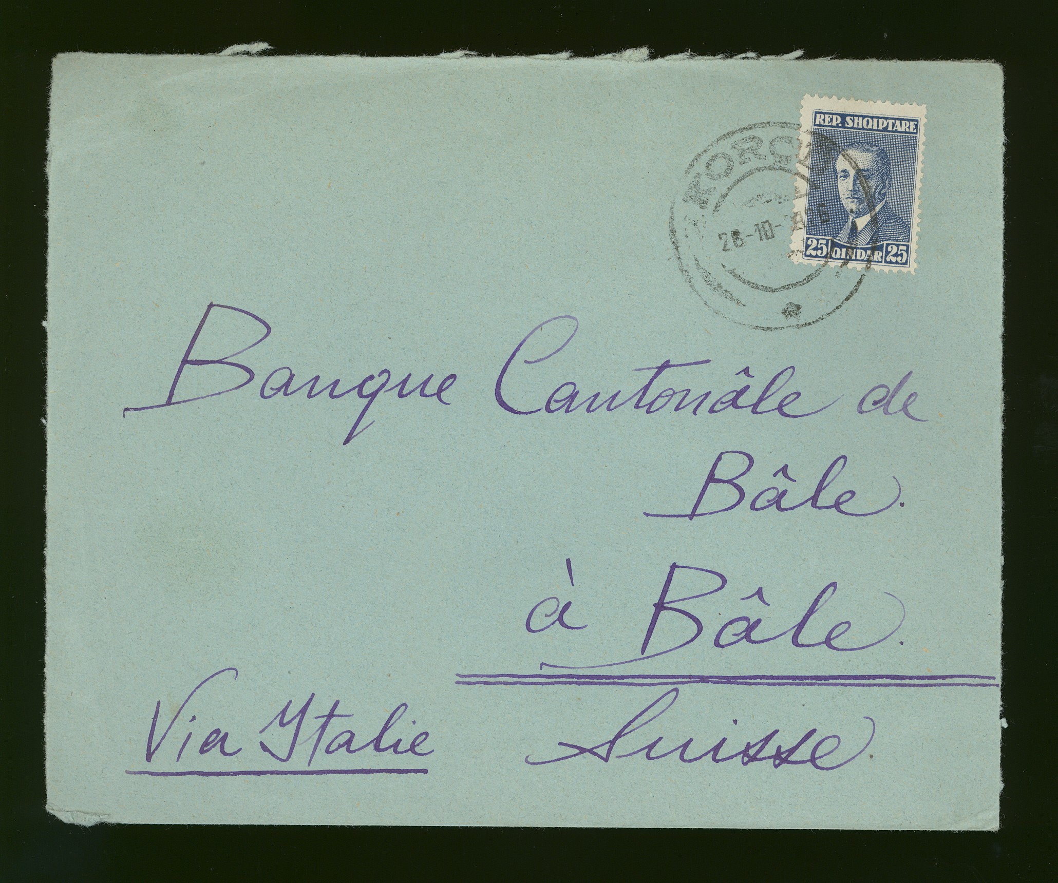 from Vlone 26th September 1940 to Switzerland, bearing