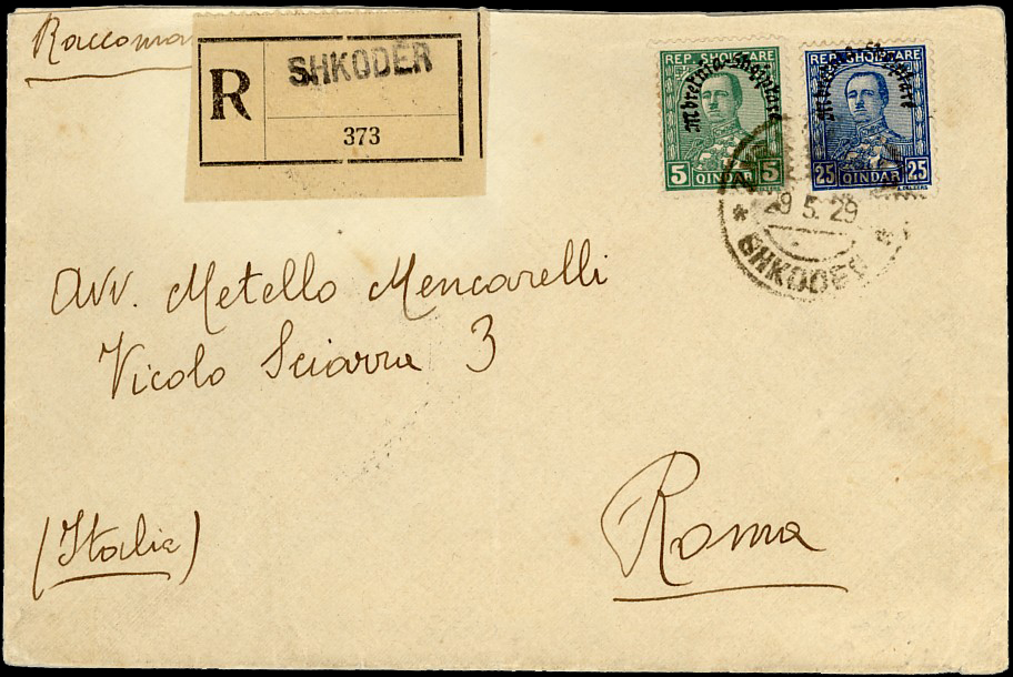 cancelled Shkodėr 29th May 1928 and addressed to Rome,