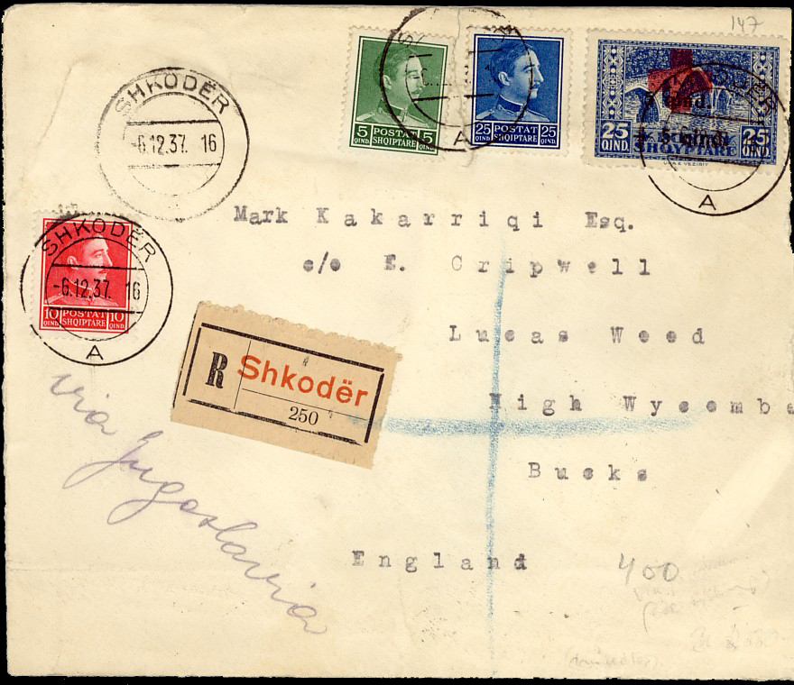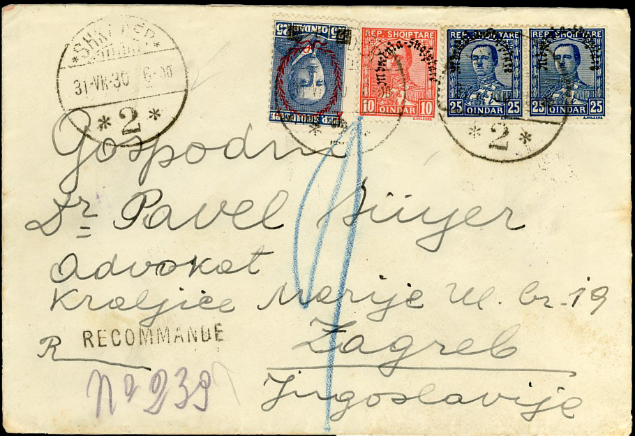 registered, commercial letter cancelled Shkoder 2nd