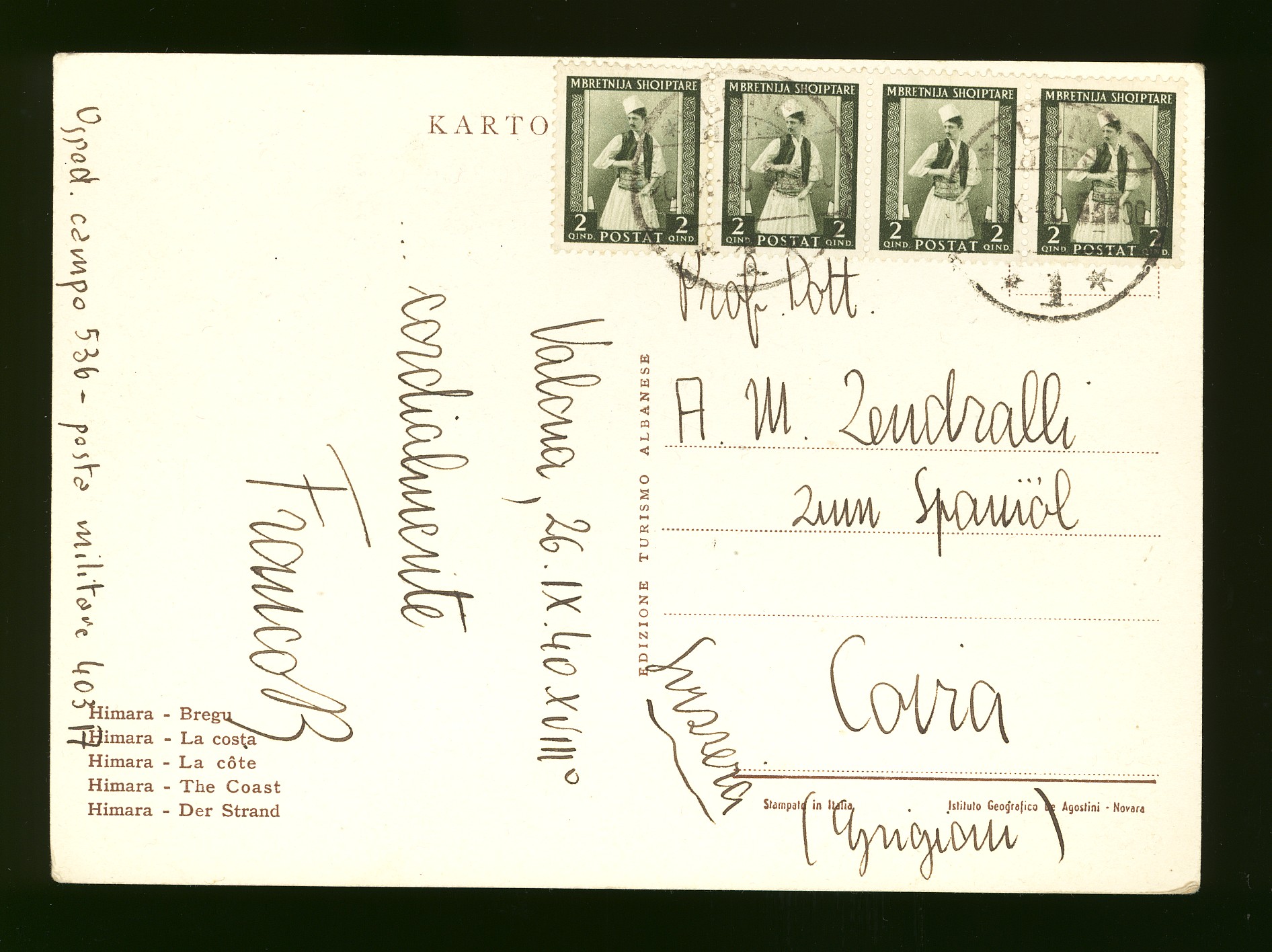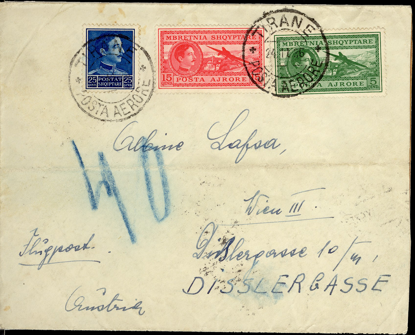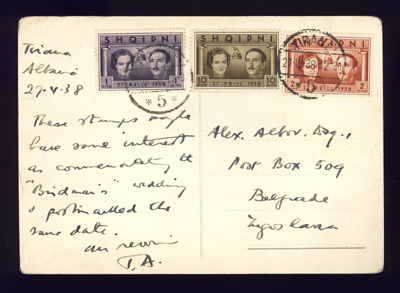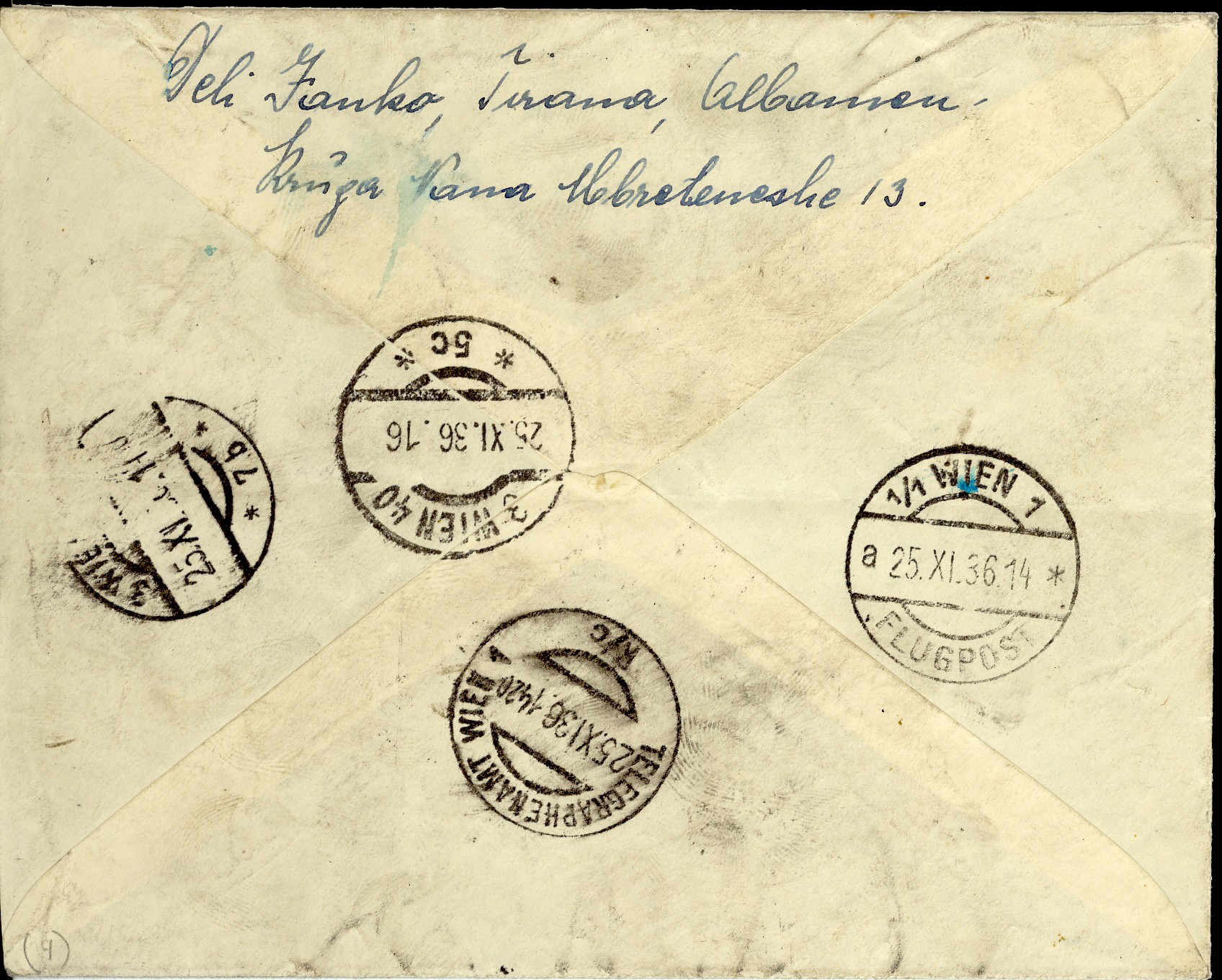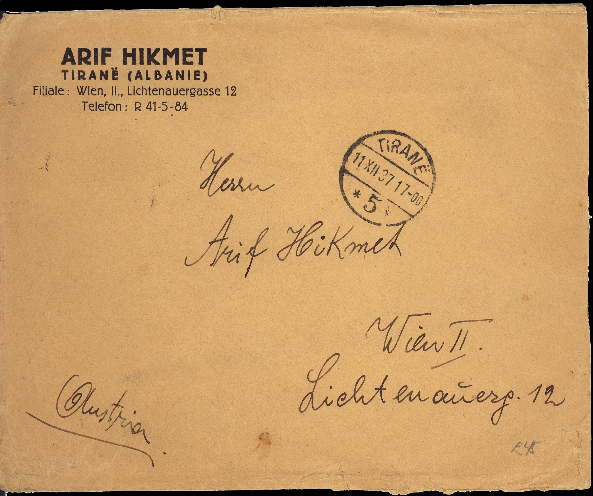 Tirane 11th December 1937 to Wien in Austria.