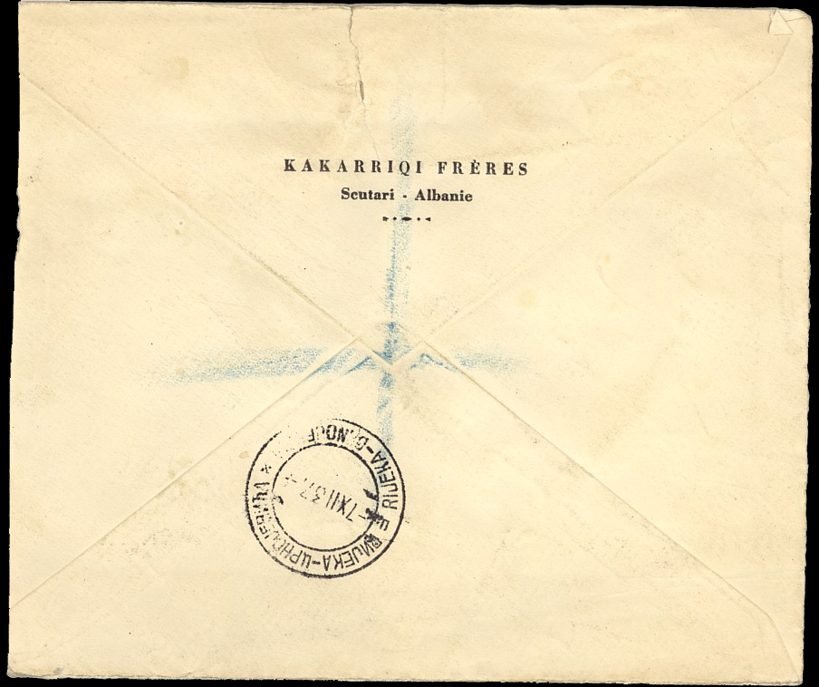 letter is cancelled transit Rijeka 7th December 1937.