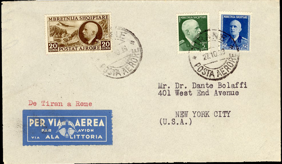 cancelled Tirane 27th October 1939 and sent to New York,