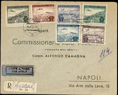 bearing a full set of the 15th December 1950 airmail