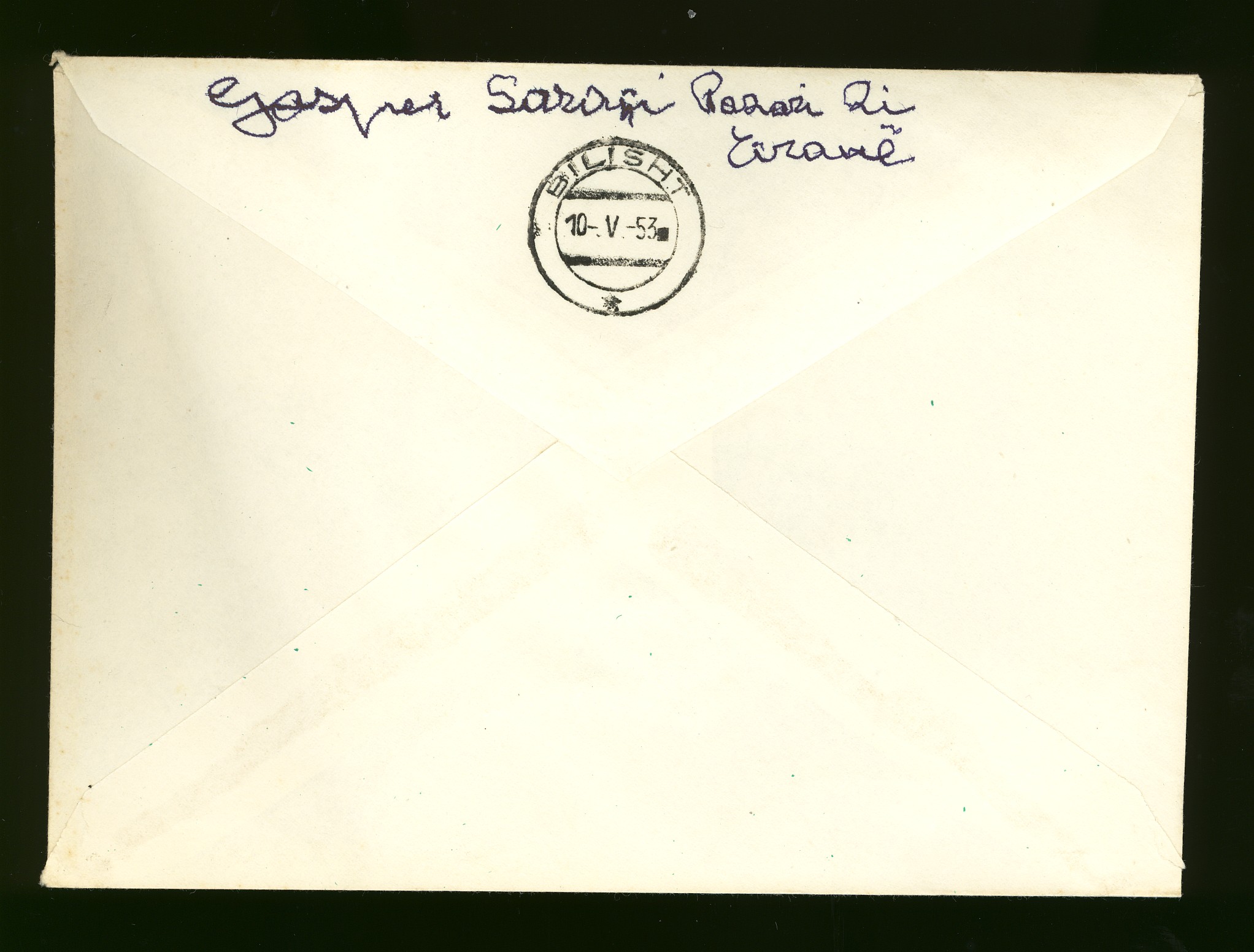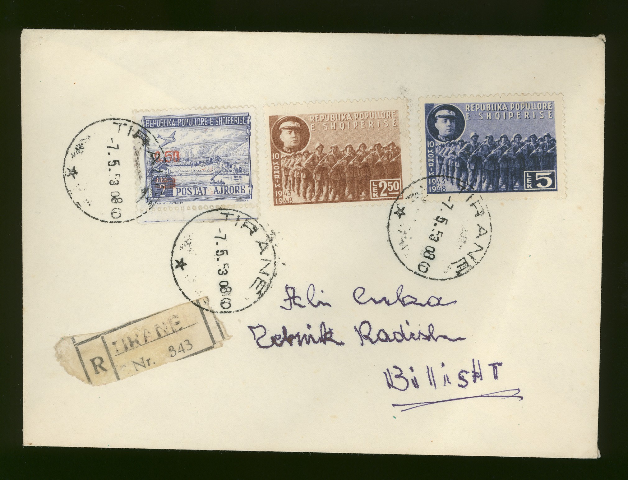 letter from Tirane 7th May 1953 to Bilisht, with arrival